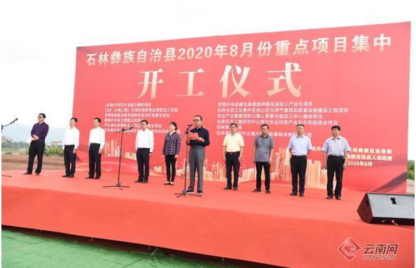12 20-08近日,昆明市石林彝族自治县2020年8月份重点项目集中开工共计12个,其中,昆明梓橦宫全新生物制药技改扩能建设项目顺利开工。