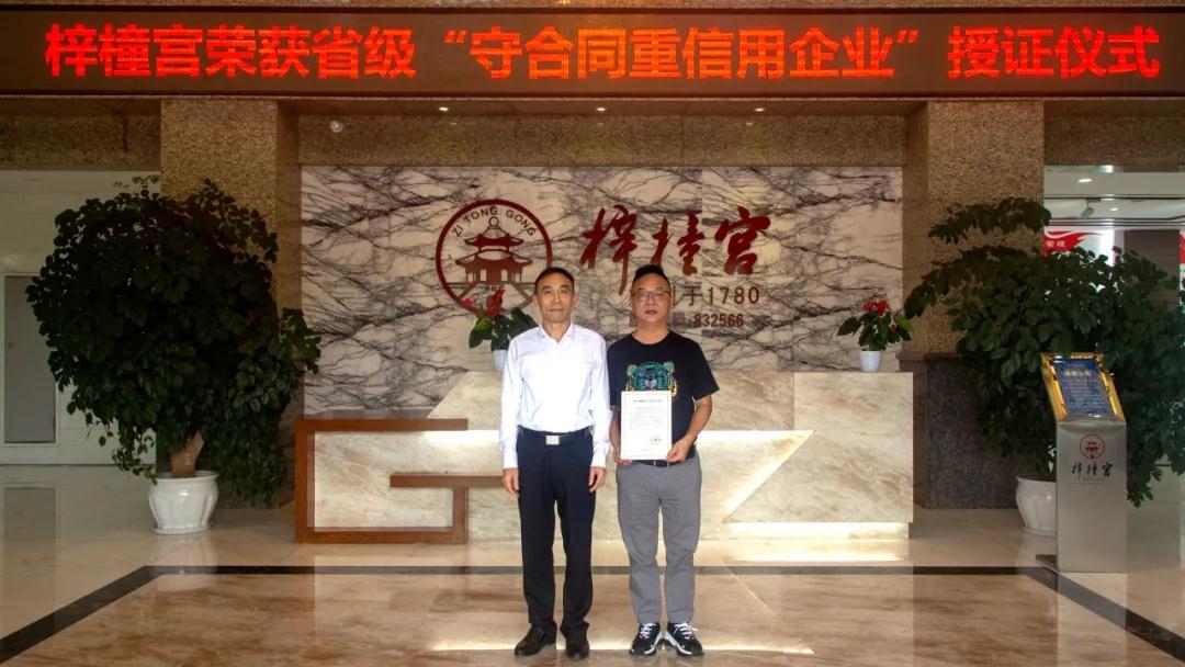 梓橦宫荣获“省级守合同重信用企业”称号!